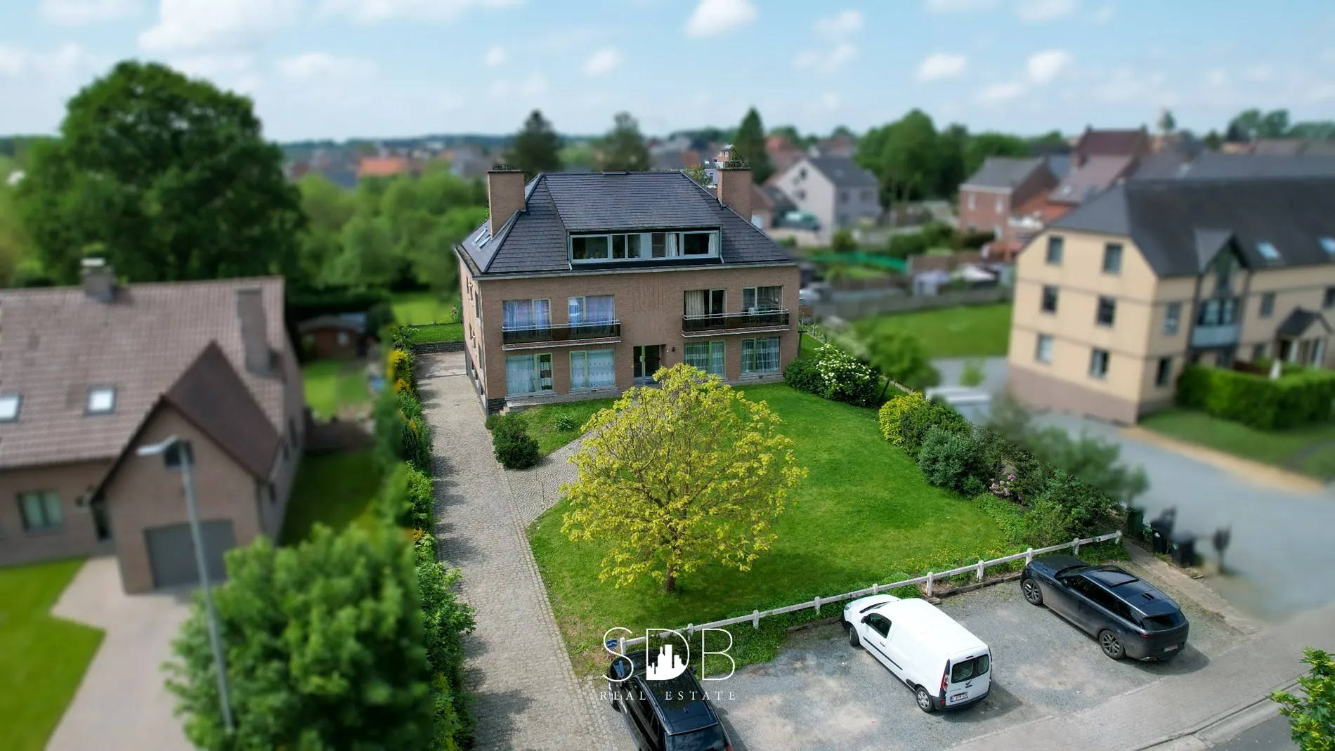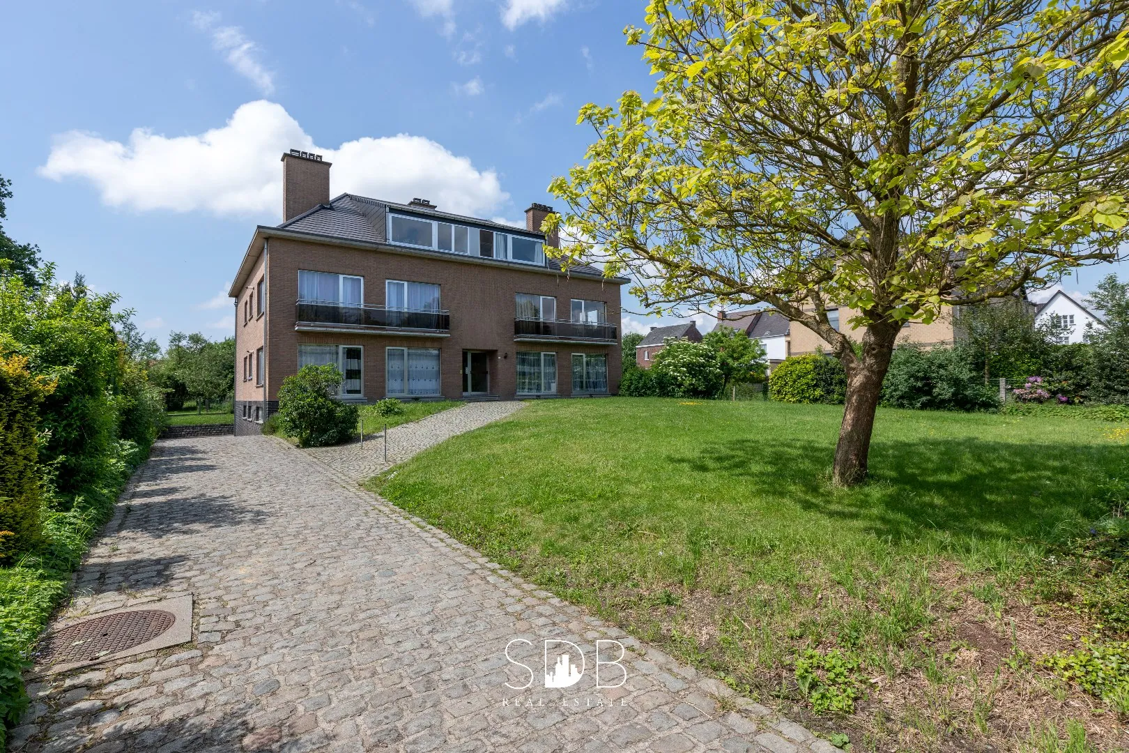 GLVS: App 1 & 2, elk 130m² groot en 3 slaapkamers en achteraan een balkon. Verder een ruime gemeenschappelijke tuin, vooraan, achteraan en zijkant.