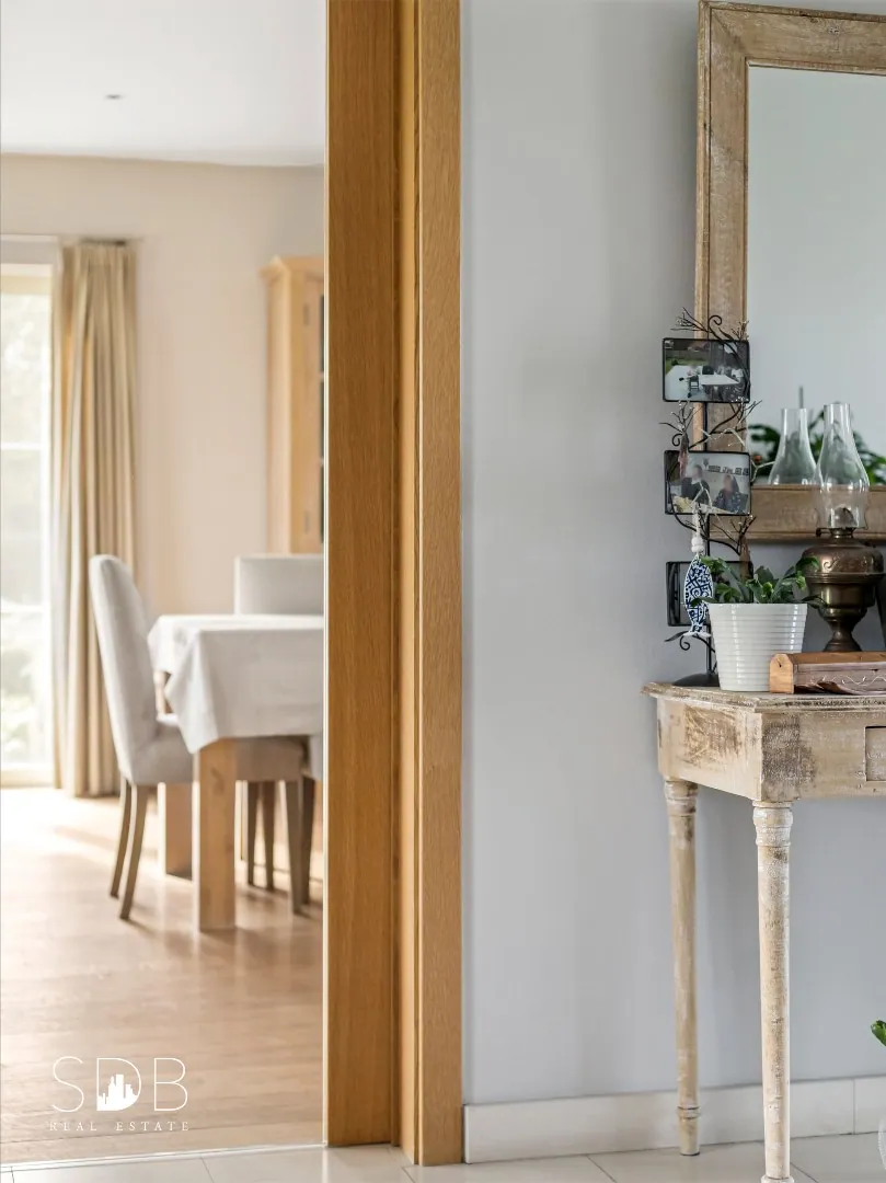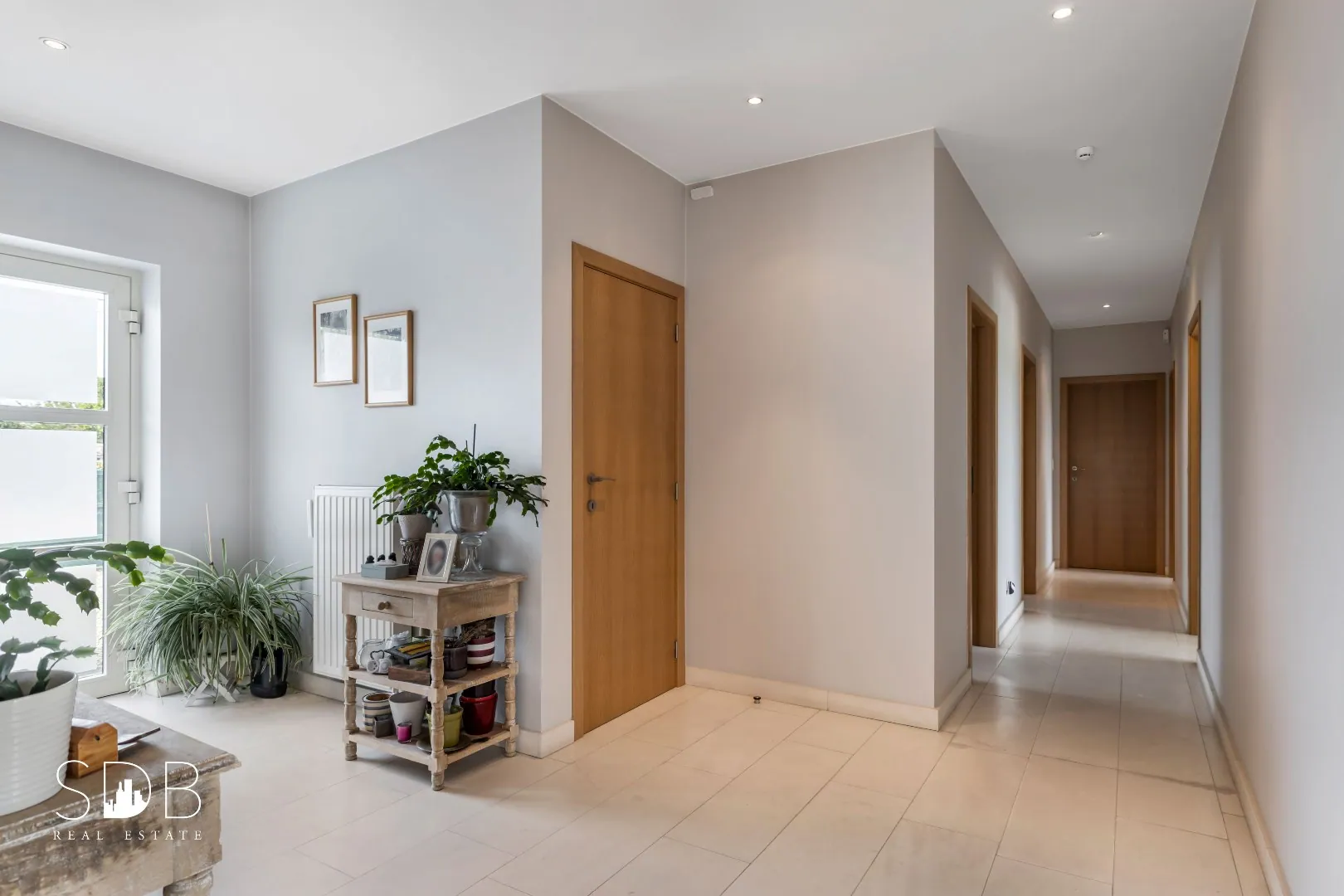 We betreden de woning via de ruime lichtrijke inkomhal voorzien van een gastentoilet.