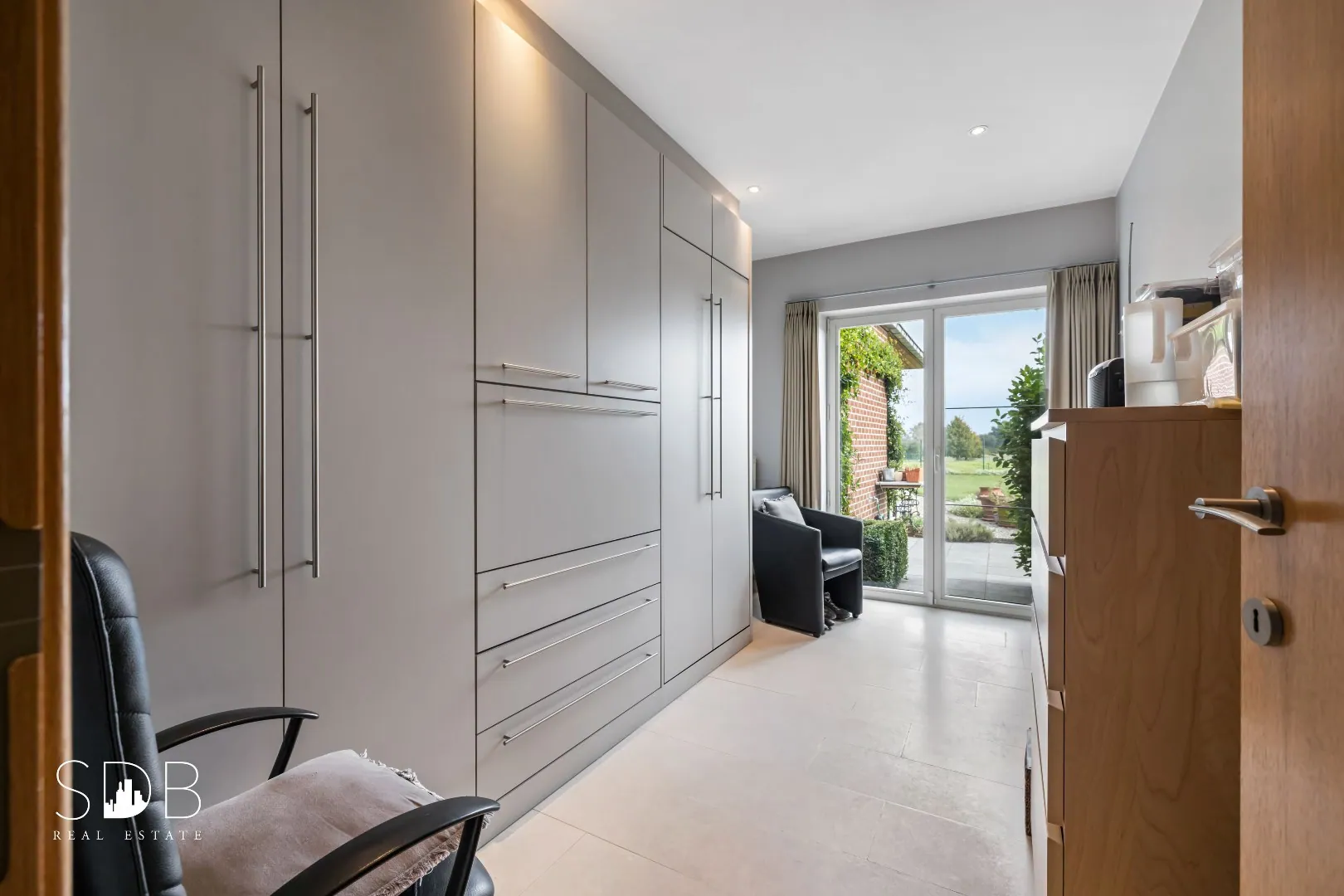 Op de benedenverdieping treffen we evenals de master bedroom inclusief landelijke maatkasten aan.