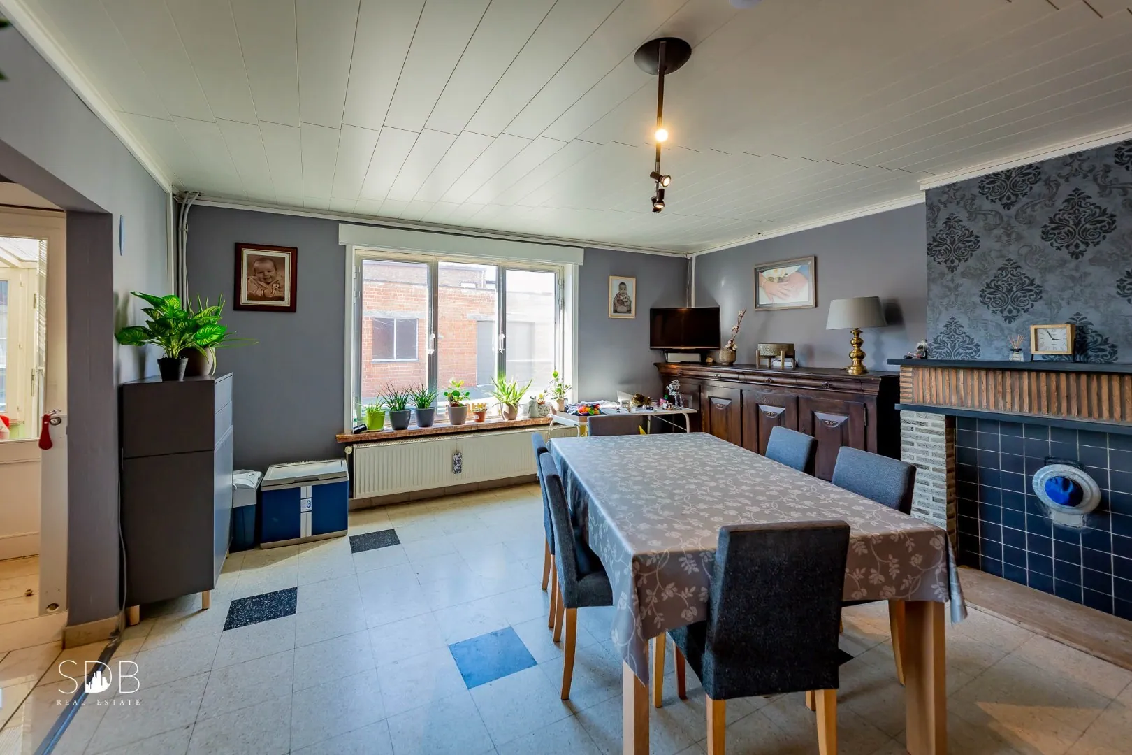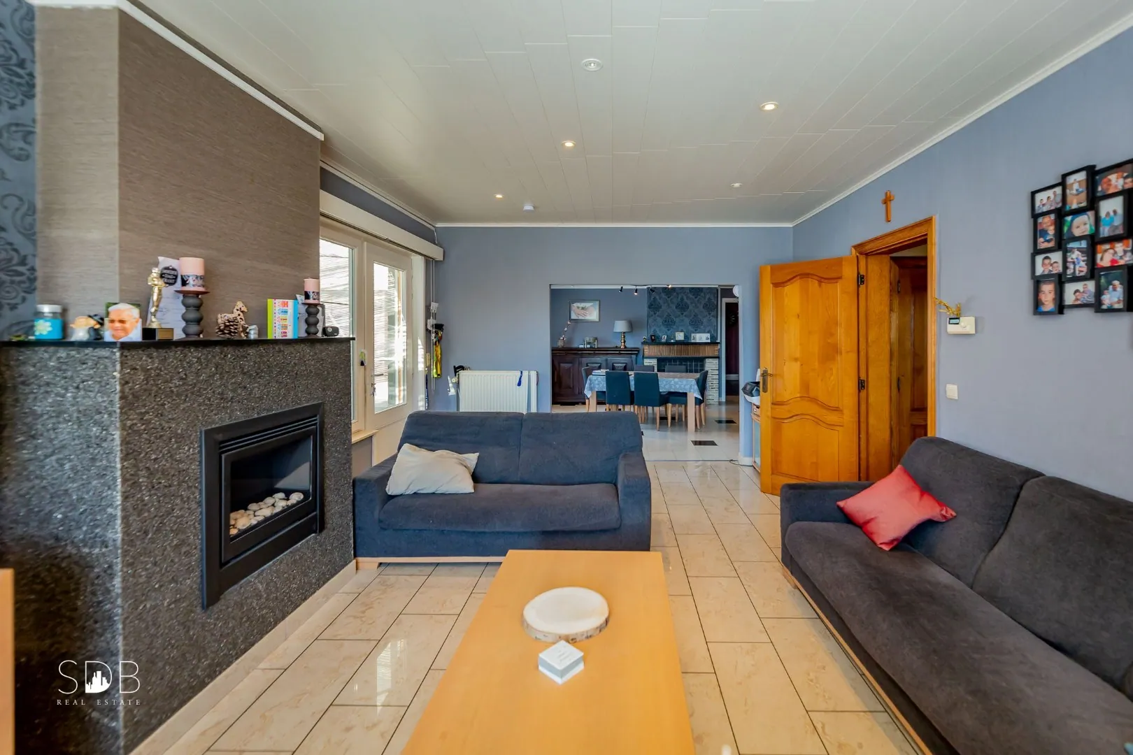 De lichtrijke ruime living is voorzien van een inbouwhaard, sfeervol verwarmen met hout. Evenals een geïnstalleerde keuken voorzien van het nodige comfort.