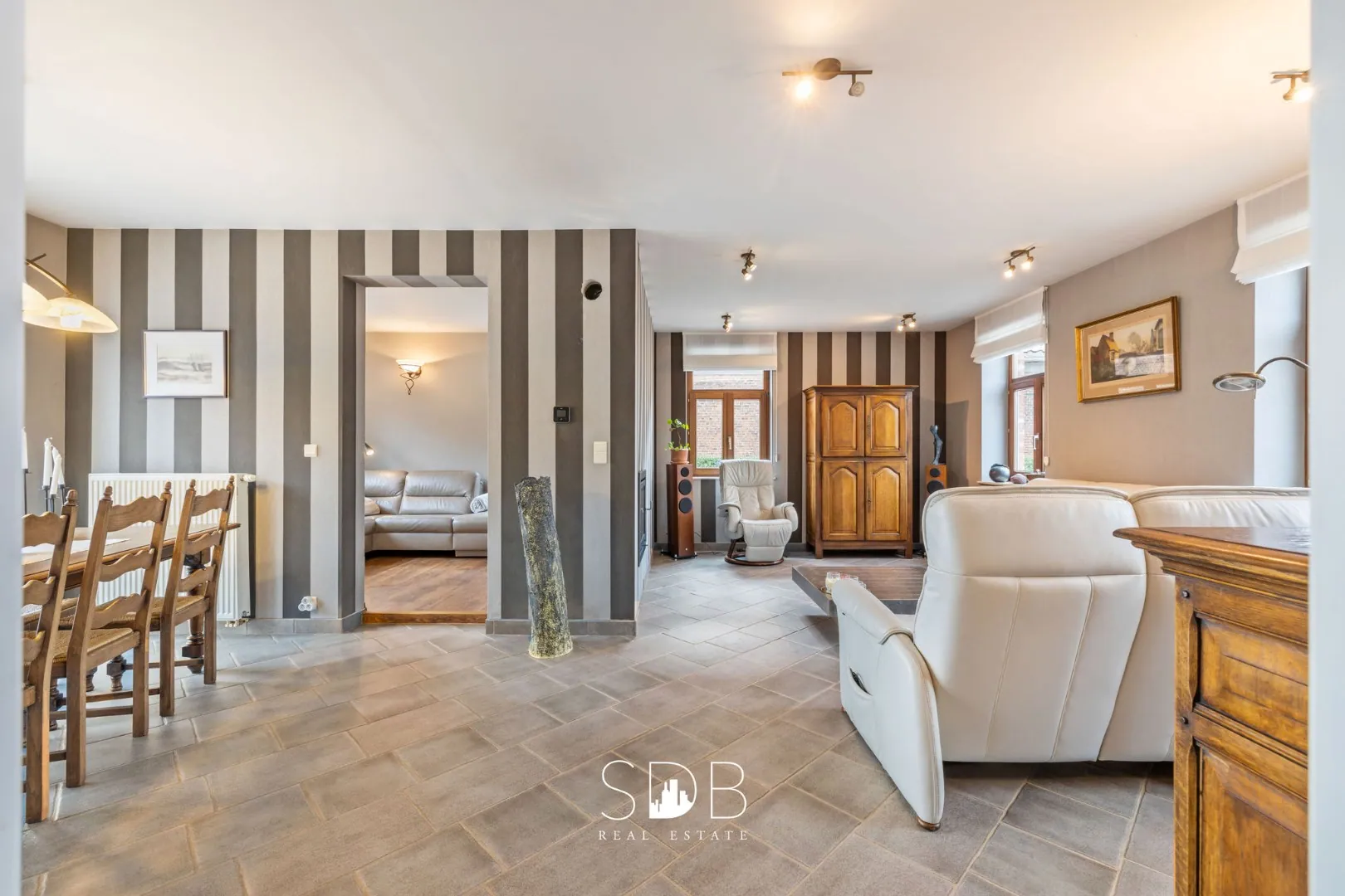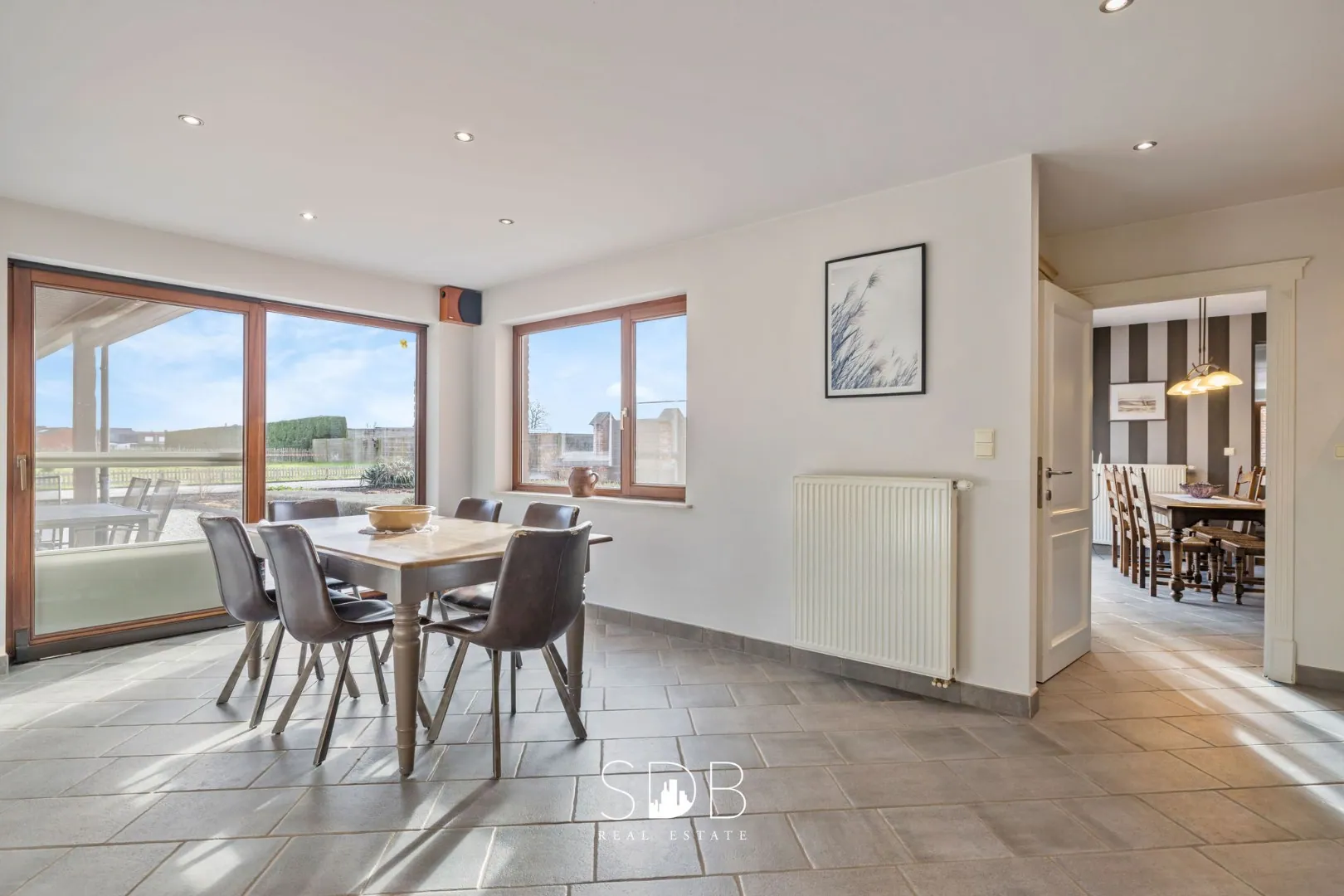 Naastliggend tref je nog een bijkomende ruimte aan die breed inzetbaar is maar momenteel ingericht is als extra zitgedeelte.