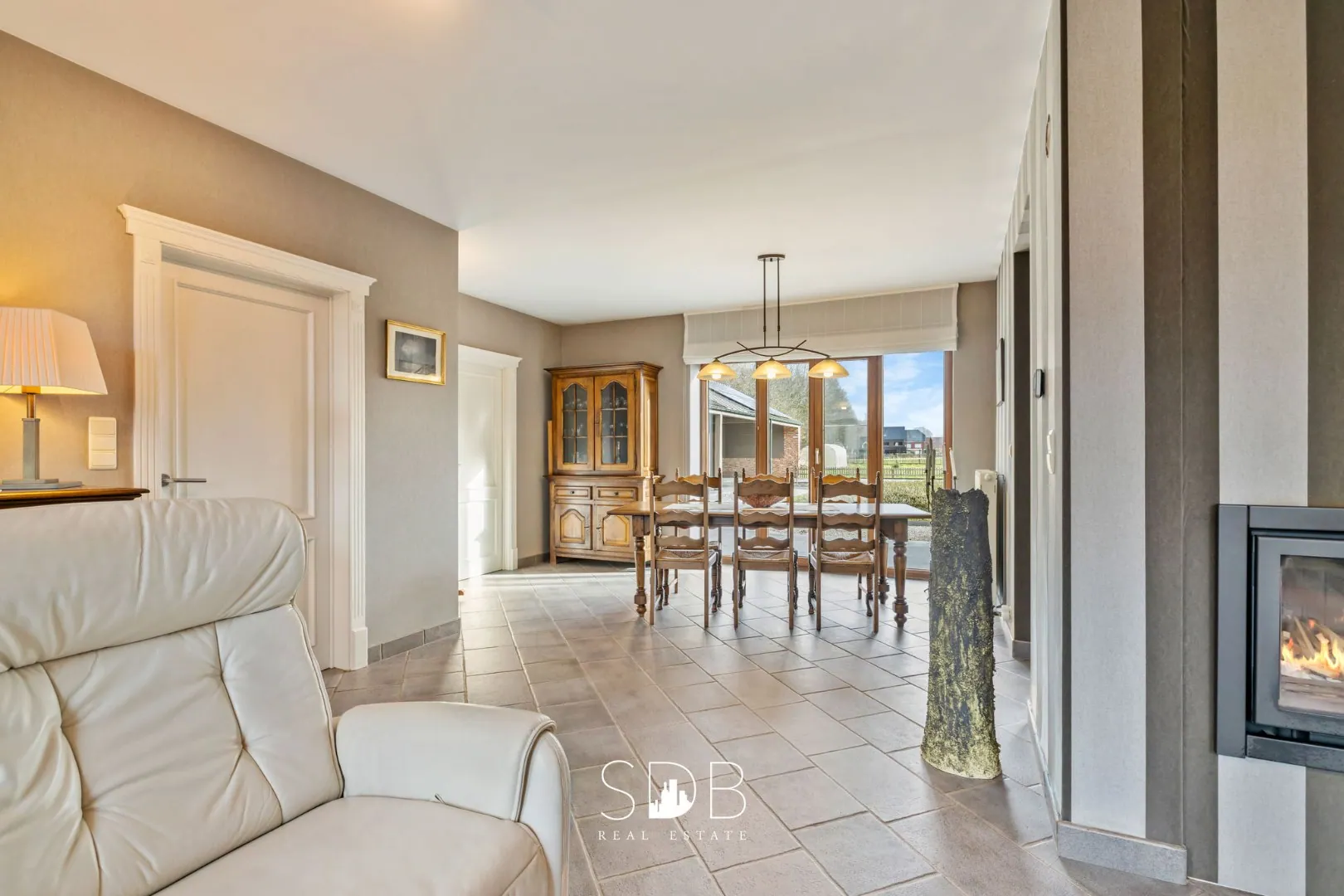 Als centrale plek in het huis, heb je de ruime woonkamer die is opgedeeld in een sfeervol zitgedeelte met openhaard en een eetgedeelte waar men gezellig kan dineren. Deze gehele leefruimte geniet van een gezonde portie natuurlijk daglicht.