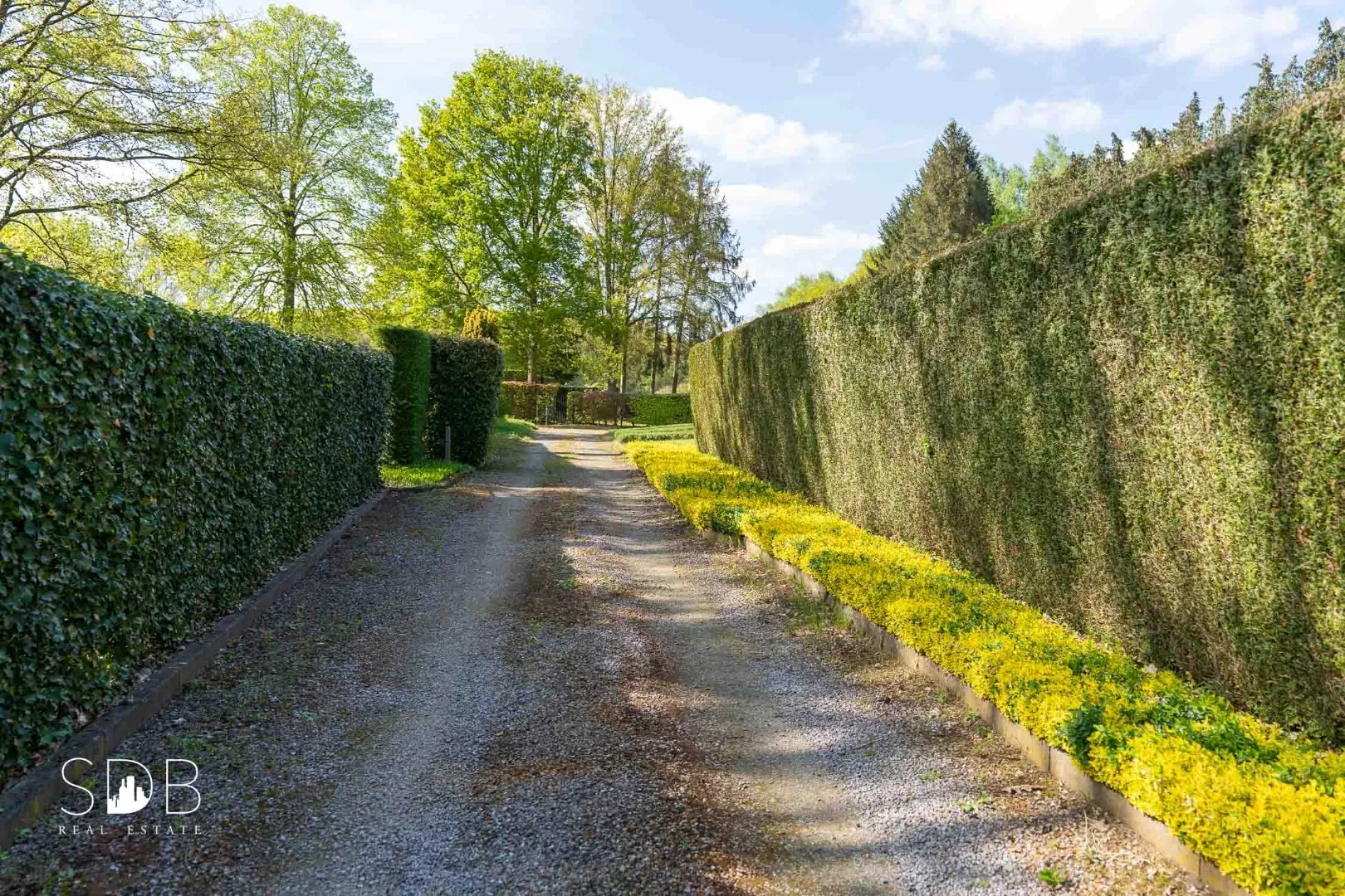 Achteraan tref je evenals een prachtige groene tuin aan, alsook het aanpalend grasland, beide kan je benaderen via de zijdelingse toegangsweg.