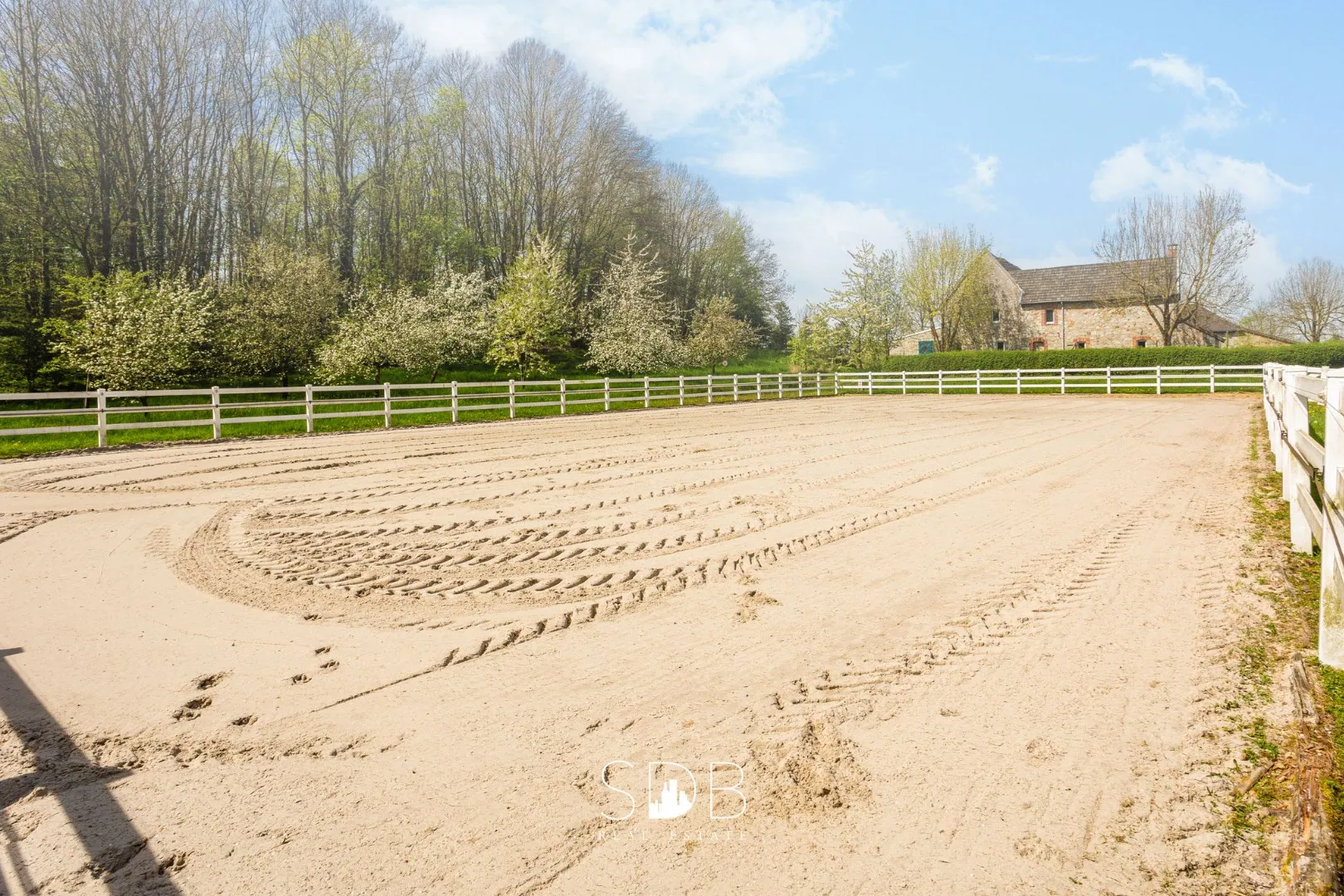 Eveneens diverse sportfaciliteiten zoals een vrijstaande stapmolen voor 4paarden en een eb en vloed buitenpiste van 20x40.