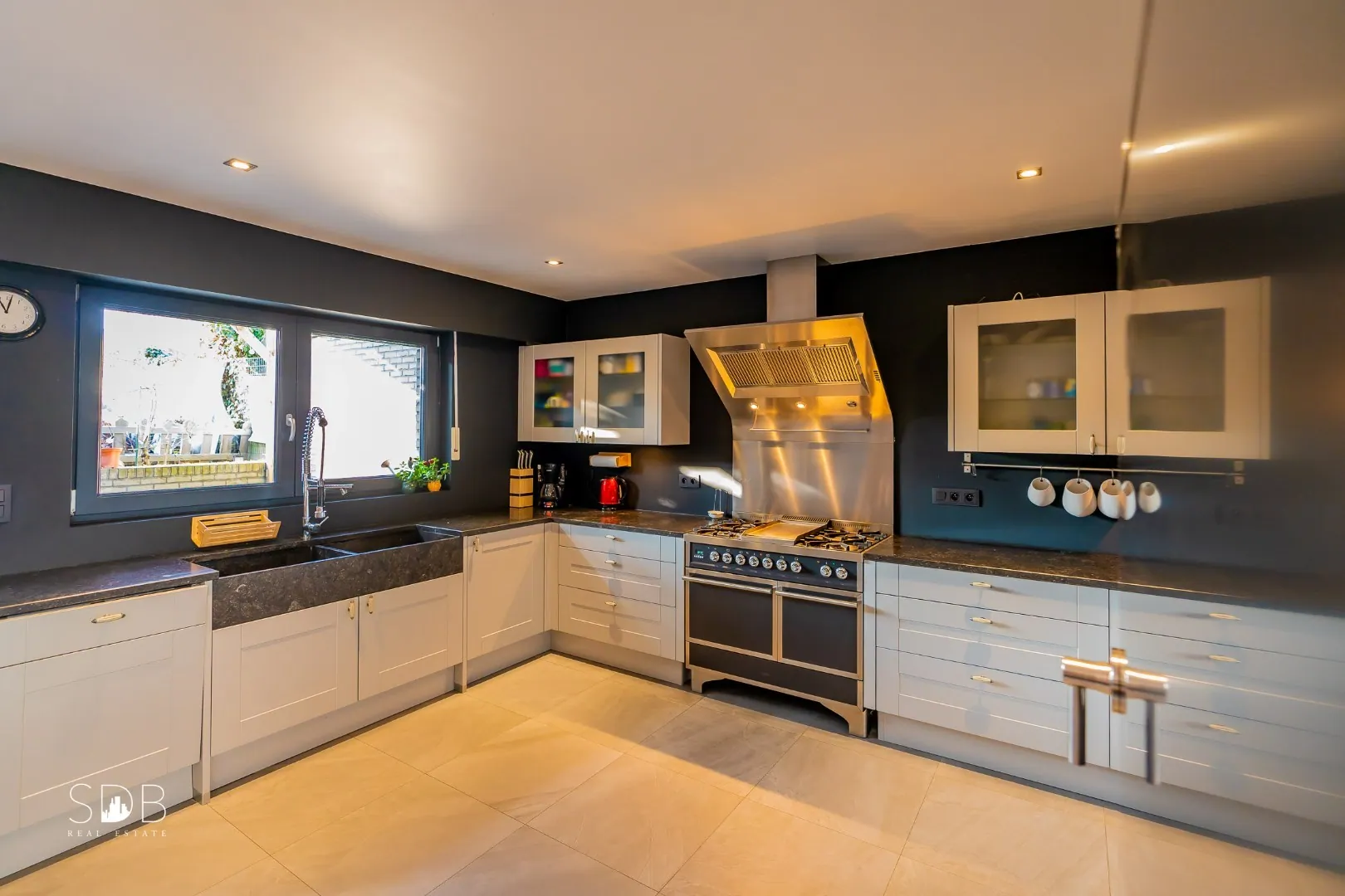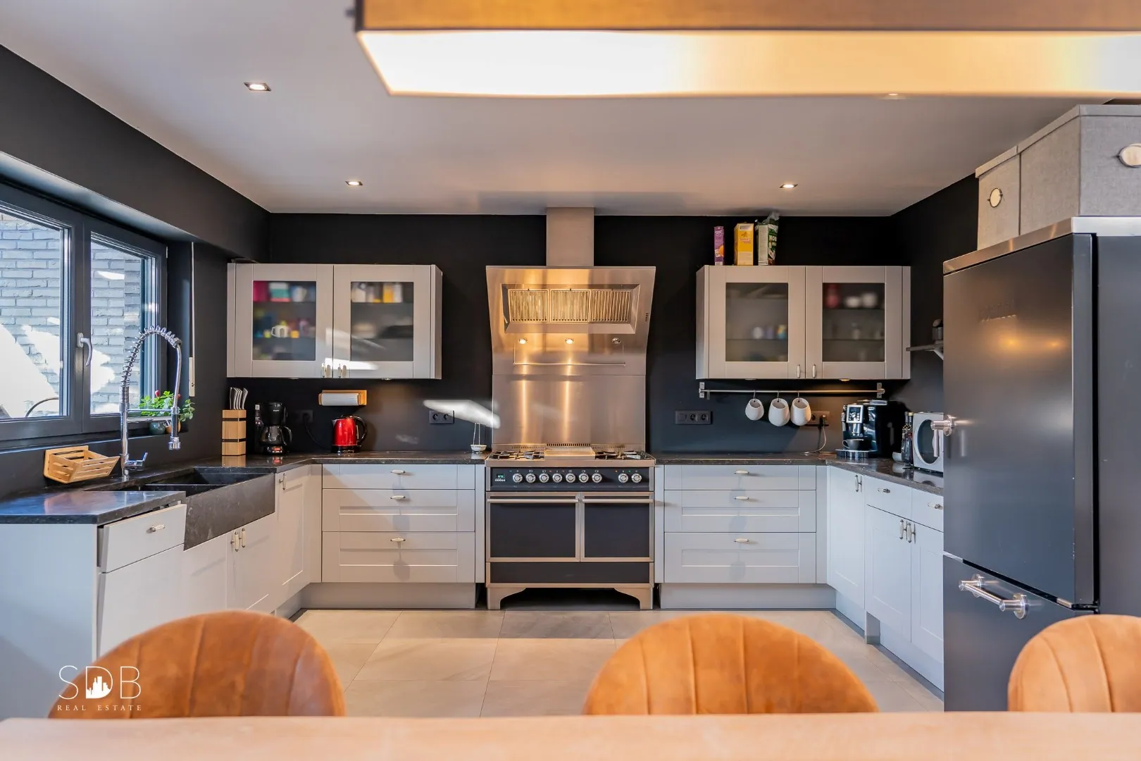 De open eigentijdse keuken biedt een antwoord op al jouw behoeften van vandaag! Deze uitgeruste keuken met zicht op de achterliggende tuin is de droom van iedere kok.