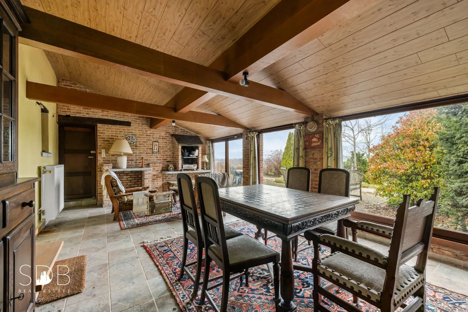 De 2de woonkamer biedt een gezellige, open leefruimte, met een royale zithoek en een eetgedeelte. De raampartijen zorgen voor een natuurlijke lichtinval. Hier bevindt zich ook een trap richting een bijkomende leefruimte op het verdiep.