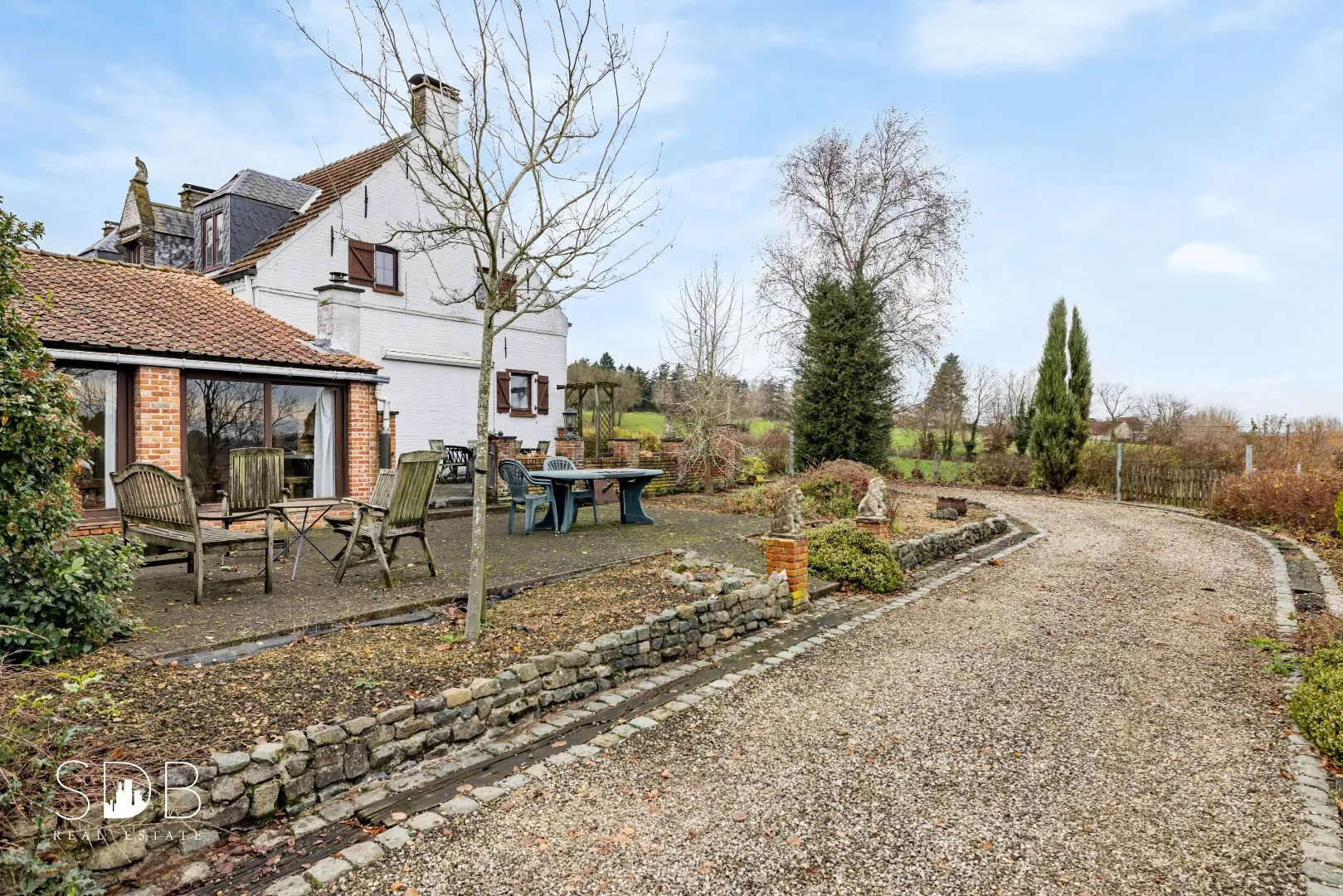 U kan deze privaat benaderen of u kan deze kaderen binnen een beroepsmatige activiteit. De 2 oprijlanen typeren het private karakter van de eigendom.