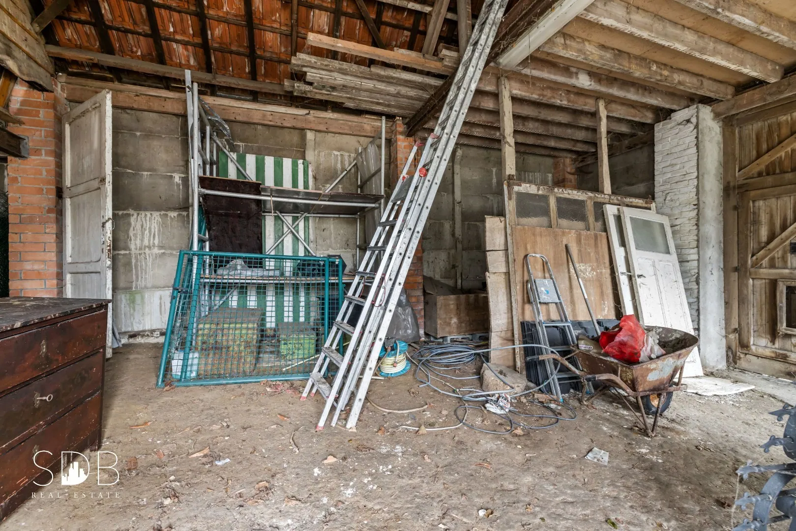 Buitenshuis tref je een schuur aan die kan dienst doen als een dubbele garage maar eveneens kan ingericht worden naar een stalgebouw met meerdere boxen inclusief poetsplaats en zadelkamer voor het huisvesten van paarden en/of dieren.