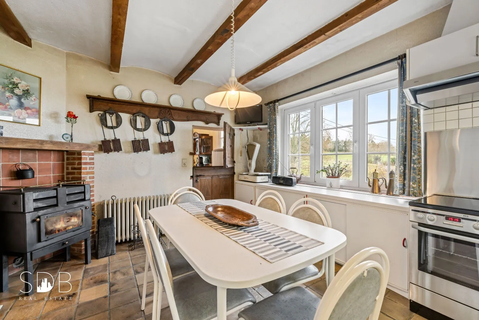 Vanuit de keuken heb je een prachtig uitzicht op het omliggend landschap. Deze keuken is voorzien van praktisch comfort.