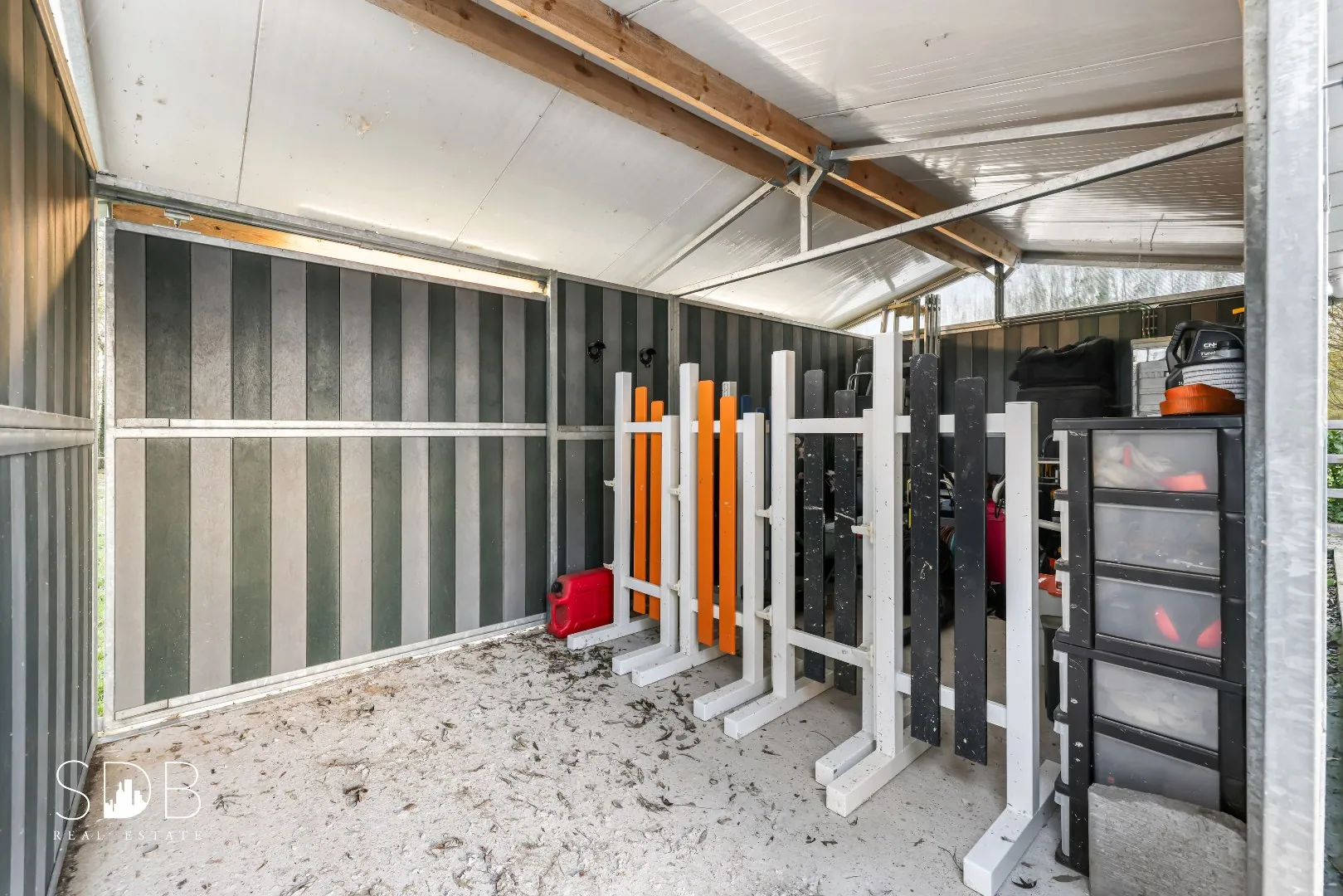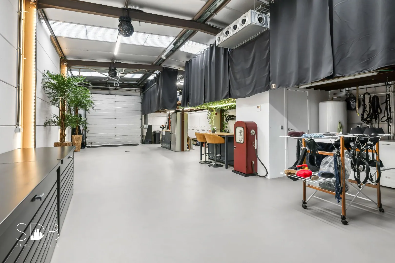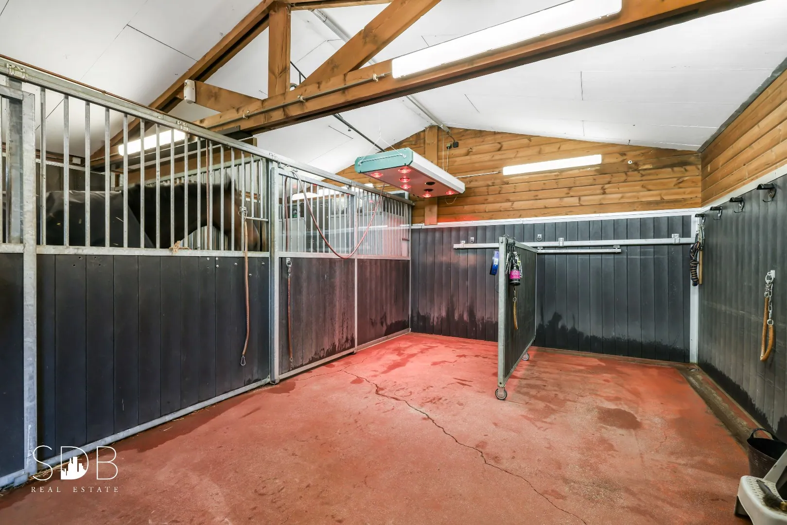 De zadelkamer en overige opslagmogelijkheden palmen aan het stalgebouw aan.