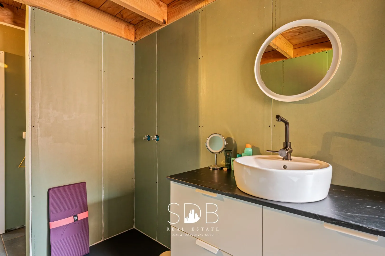 Eveneens is er nog een douchekamer welke is uitgerust met een enkel lavabomeubel en uiteraard een douche.